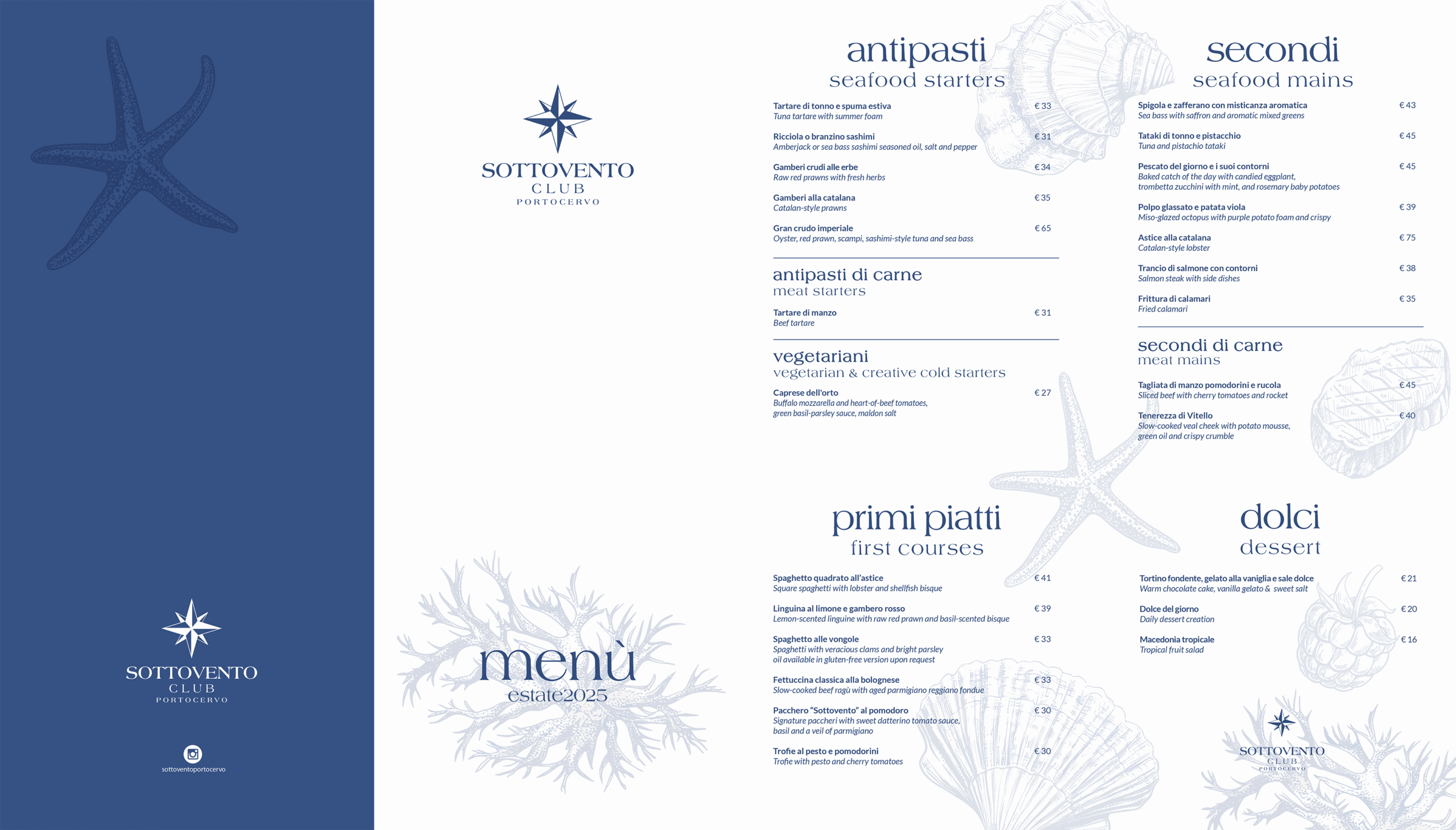 Il ristorante diventa così un salotto gastronomico riservato, in perfetta continuità con l’atmosfera discreta del Sottovento Club: pochi tavoli, un servizio misurato, un ritmo che segue la conversazione e la bellezza del momento.